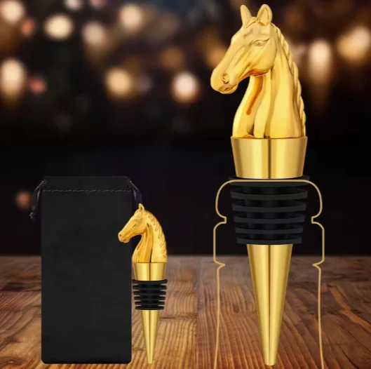 Elegants metāla pudeļu aizbāznis ar zirga galvas formas rokturi – stilīgs un praktisks risinājums jūsu vīna vai citu dzērienu pudelēm. Hermētiskais silikona gredzens nodrošina, ka dzēriens ilgāk saglabājas svaigs.